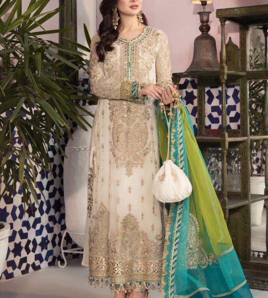 Dil-Ruba – The Royal Heritage Pishwas Indulge in the regal charm of "Dil-Ruba," a masterpiece designed to capture hearts. This deep embroidery ensemble is a tribute to traditional craftsmanship, featuring a majestic floor-length silhouette. Adorned with a rich fusion of gold tilla, multicolor floral embroidery, and shimmering sequins, it is the ultimate statement piece for a grand wedding or a festive night.